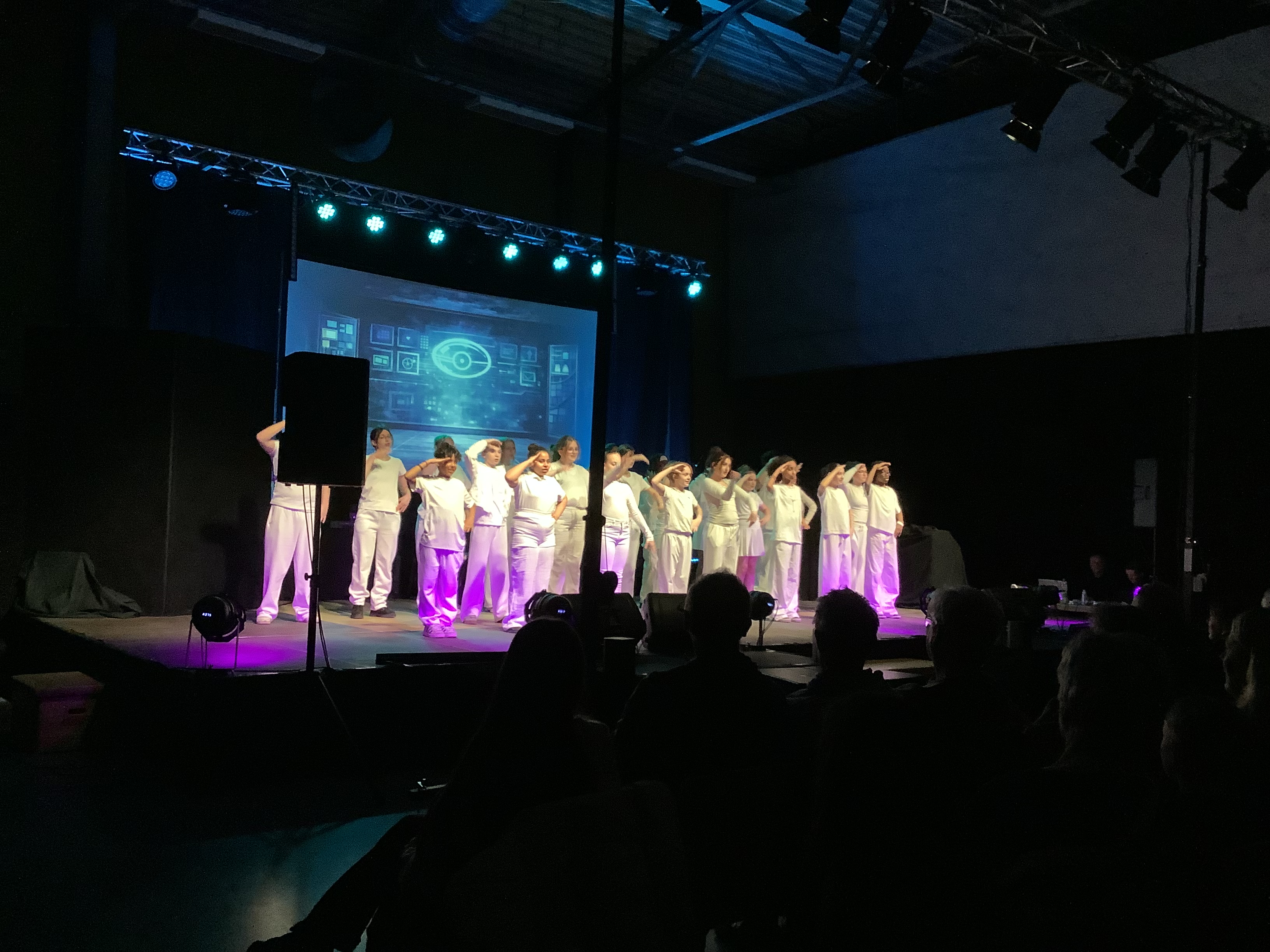 Ob der Schulchor in Begleitung von Klavier und Bratsche, die Tanz-AG mit modernen sowie kulturell geprägten Tänzen und akrobatischen Einlagen, die Musikkurse der Jahrgänge: durchgängig begeisterten die Schüler:innen mit ihren musikalischen Darbietungen aus der Welt des Rock und Pop. Herausragend waren die neue Gruppe der Schule Harmonic 5 mit mehrstimmigem Gesang ebenso wie das Konzept und die Darbietungen nach der Pause. Hier stand das Musical „We will rock you“ in einer Bearbeitung im Vordergrund, in Schauspiel, Tanz und Gesang überzeugend präsentiert. Das liebevoll gestaltete Bühnenbild und tolle Kostüme gehörten selbstverständlich dazu. Worum geht es? Die Story handelt von einer Zukunft, in der es nur noch Computermusik von Global Soft gibt. Galileo, der Protagonist, soll das letzte Instrument, eine E-Gitarre, finden, damit der Rock´n Roll wieder geboren werden kann.