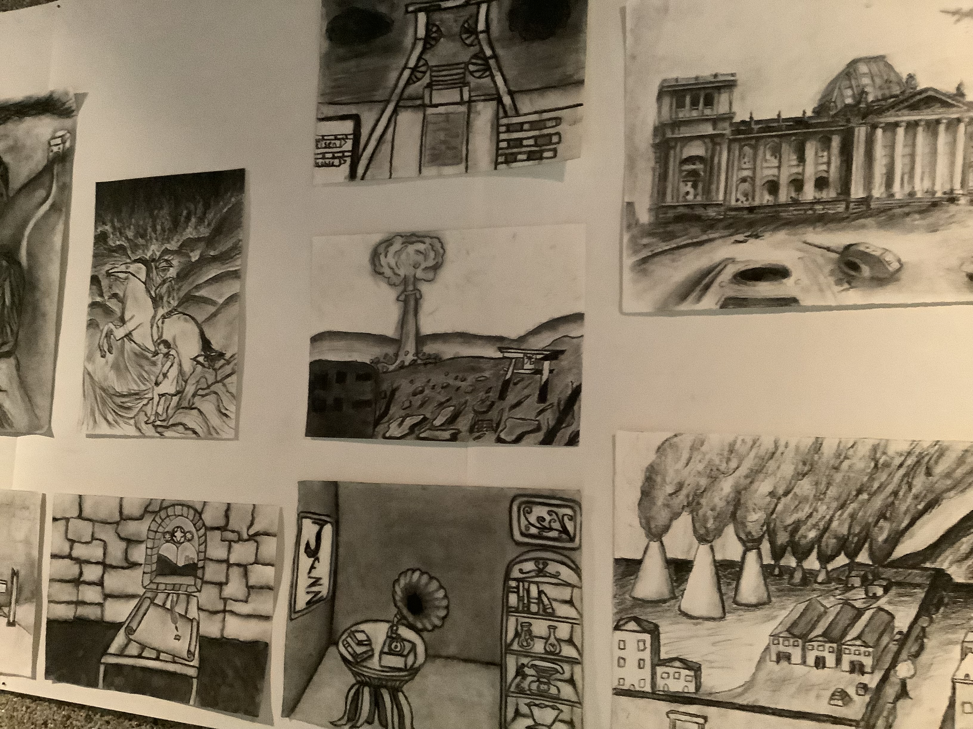 Iris Lorsong, Kunst-Lehrerin der Schule, betont: „Der Kunst-Leistungskurs in der Sekundarstufe II ist ein Angebot unserer Schule, das von vielen Schüler:innen gerne wahrgenommen wird.“ Dieses Angebot ist ein besonderes Merkmal der Gesamtschule Nord. Beeindruckend auch die Ergebnisse, die an diesem Abend im Rahmen der Kunstausstellung von Schüler:innen aller Jahrgangsstufen zu sehen waren. Zu den Highlights gehörten politische Collagen in Anlehnung an John Heartfield, Theaterkulissen und Animationsfilme inspiriert von William Kentridge, Leuchtkästen mit inszenierter Fotografie wie bei Arbeiten von Jeff Wall ebenso wie großformatige Leinwände mit Acrylfarben zu Alltagssituationen, Traumzimmer, und Monster. Ansonsten vielfältige Arbeiten quer durch alle Gattungen, sogar Stickbilder mit Crazy Hairs.
